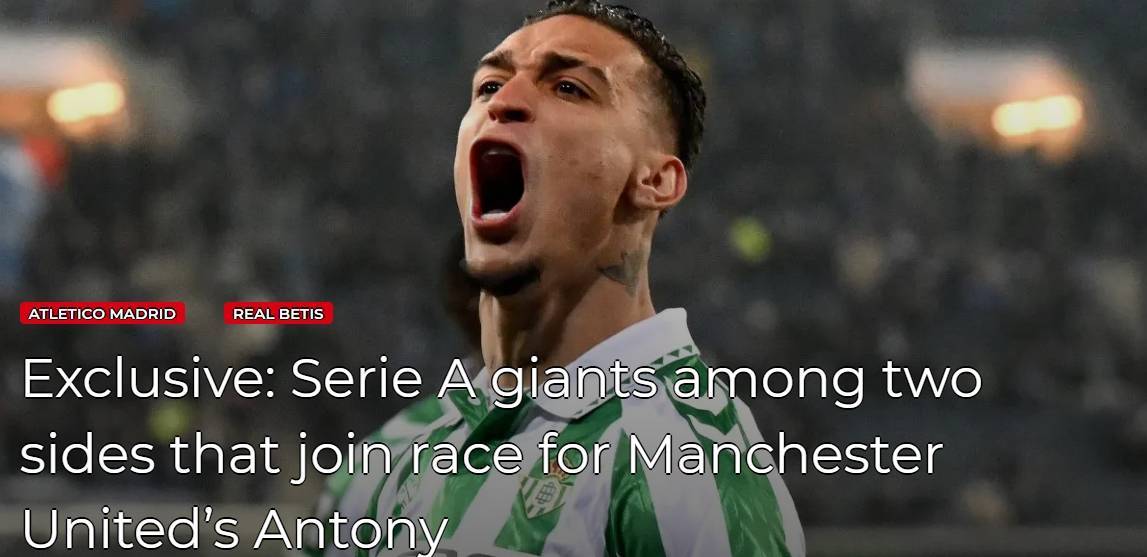 报道称,贝蒂斯希望能够留下安东尼,但他们考虑续租而非买断。曼联则优先考虑出售,俱乐部希望筹集资金以进行引援。曼联希望从安东尼身上收回4000万至5000万欧元。